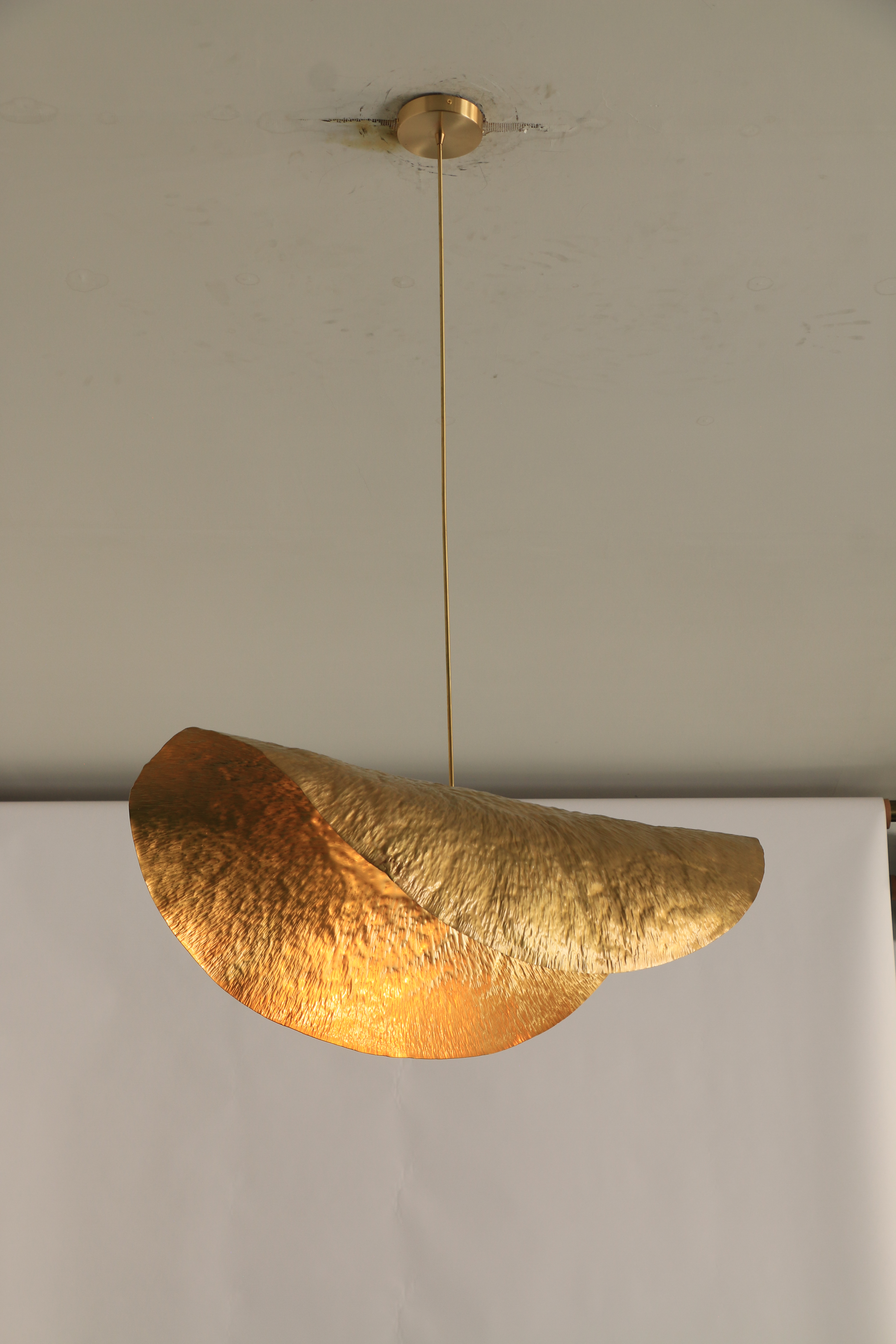 Доступный в полностью медном или латунном золотом исполнении, этот подвесной светильник излучает атмосферу постмодернистской роскоши, идеально подходящую для вилл, гостиных или столовых. Уникальный дизайн в виде листа лотоса добавляет элегантности и креативности любому пространству.